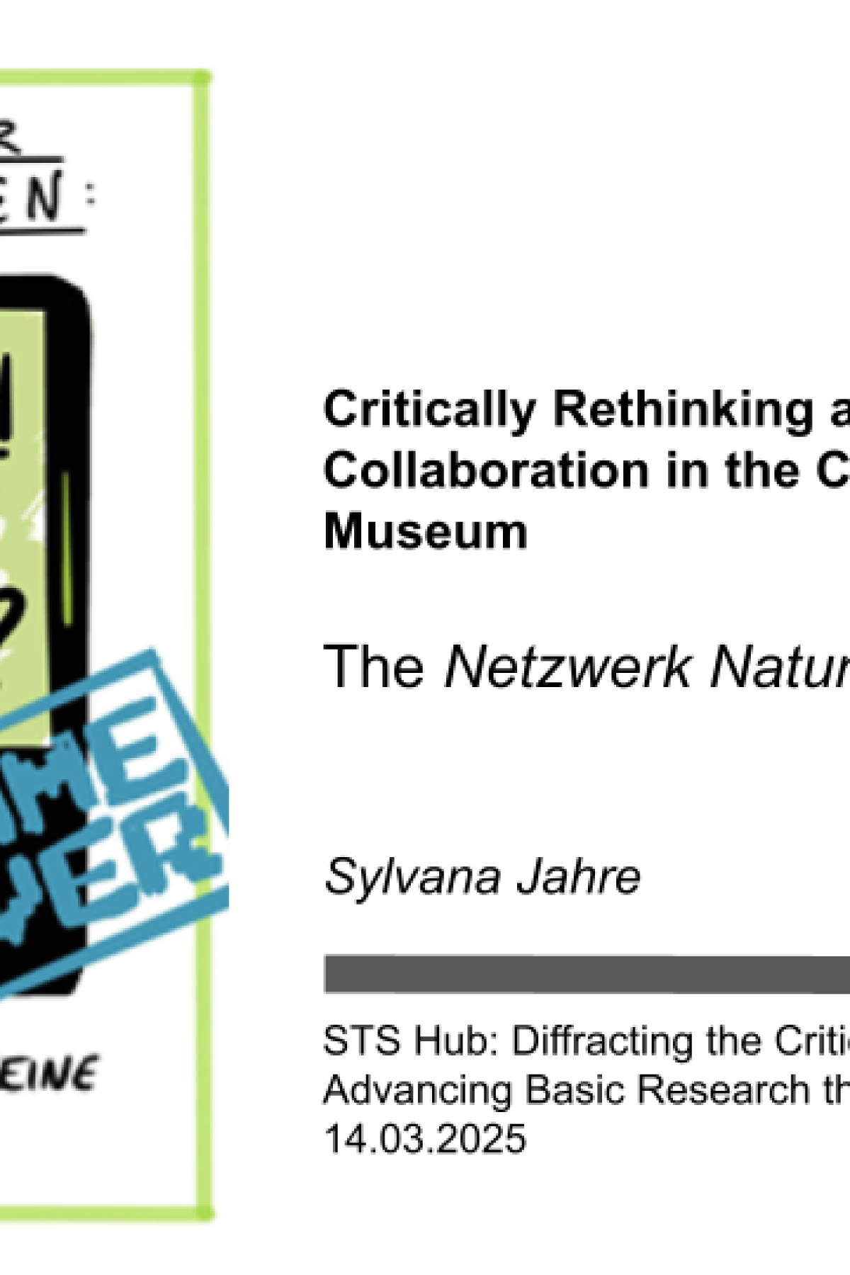 “Critically Rethinking and Enacting Collaboration in the Context of a Museum: The Netzwerk Naturwissen” Sylvana Jahre (March 11–14, 2025)